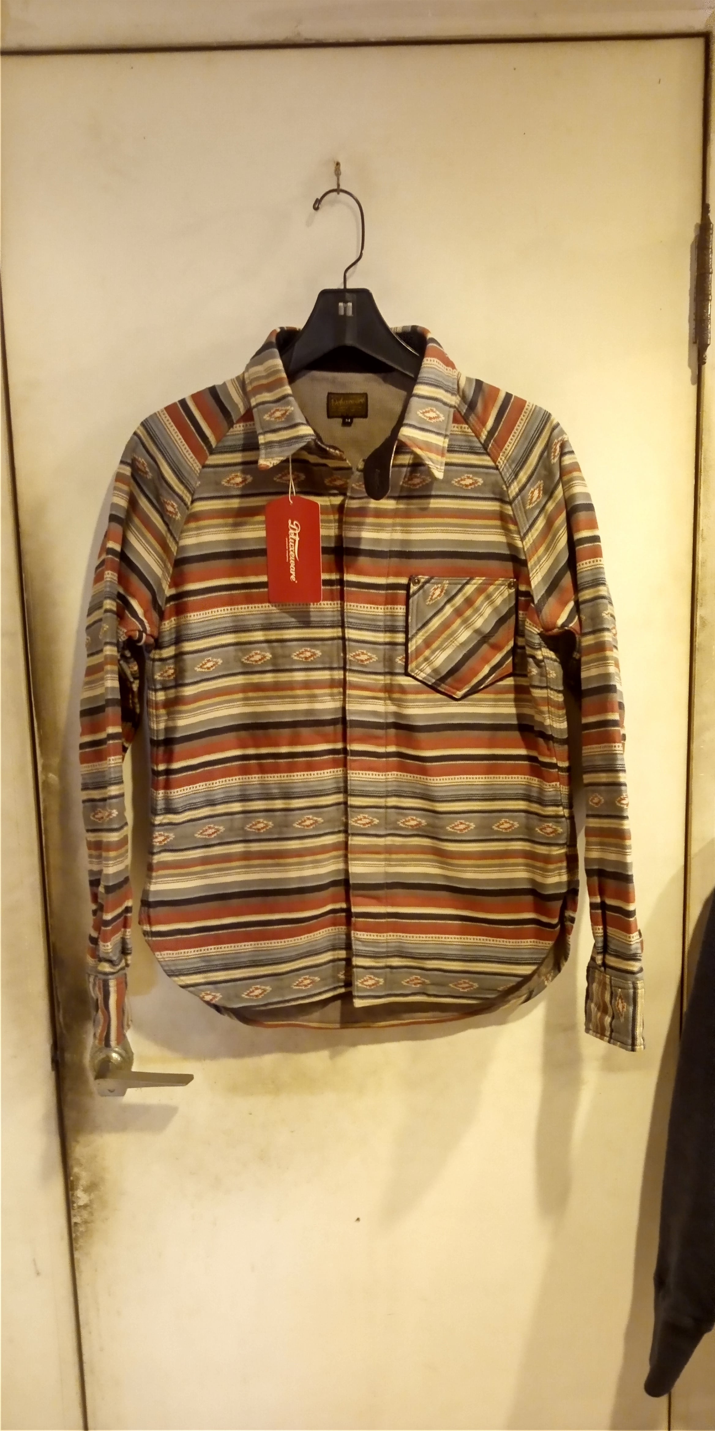 デラックスウエア最新3重織りネイティブボーダーヘビーネルシャツが入荷致しました。カラーレッドボーダー綿100%ワンウォッシュ済み