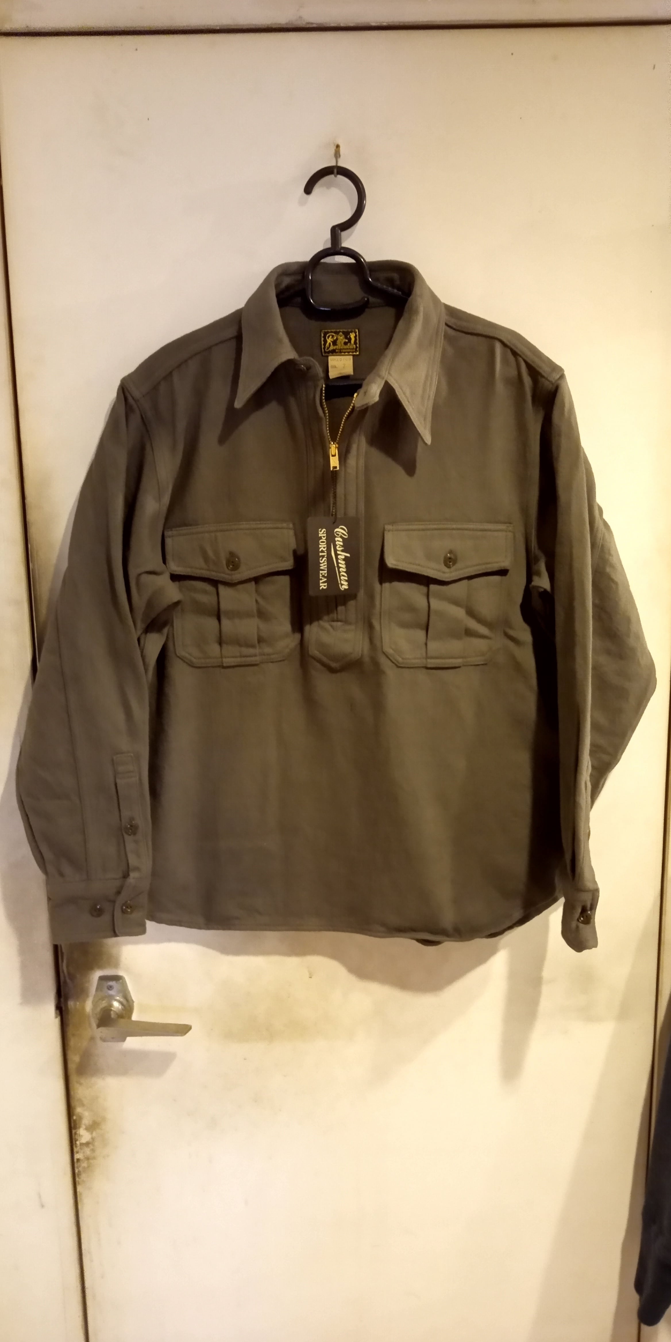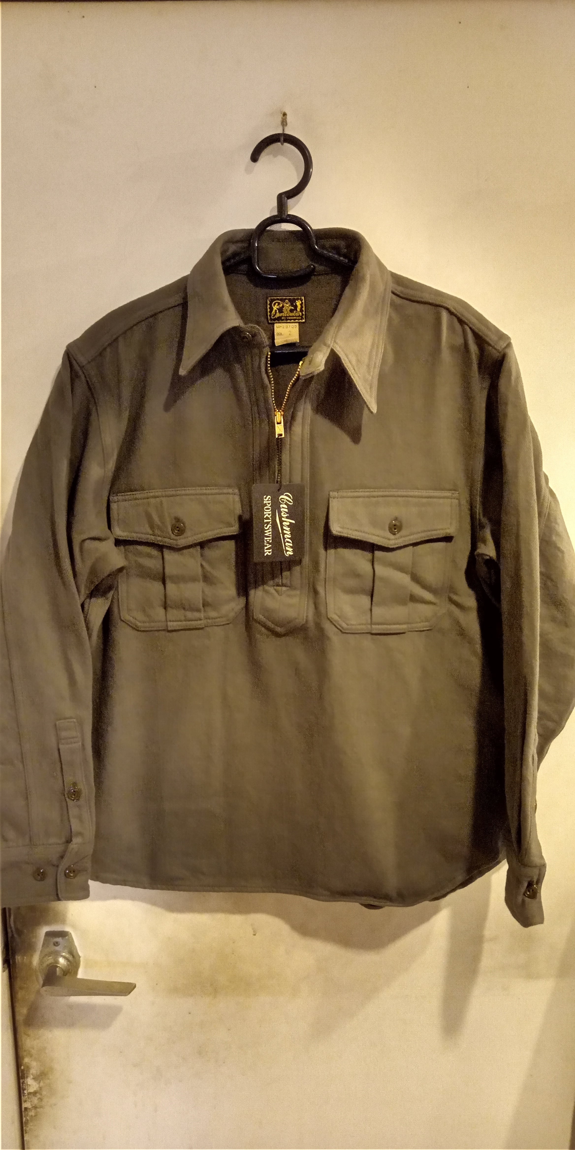 クッシュマン2025年秋冬物最新ミリタリーネルハーフジップワークシャツが入荷致しました。コットン1000パーツ、カラーオリーブ、ワンウォッシュ済み