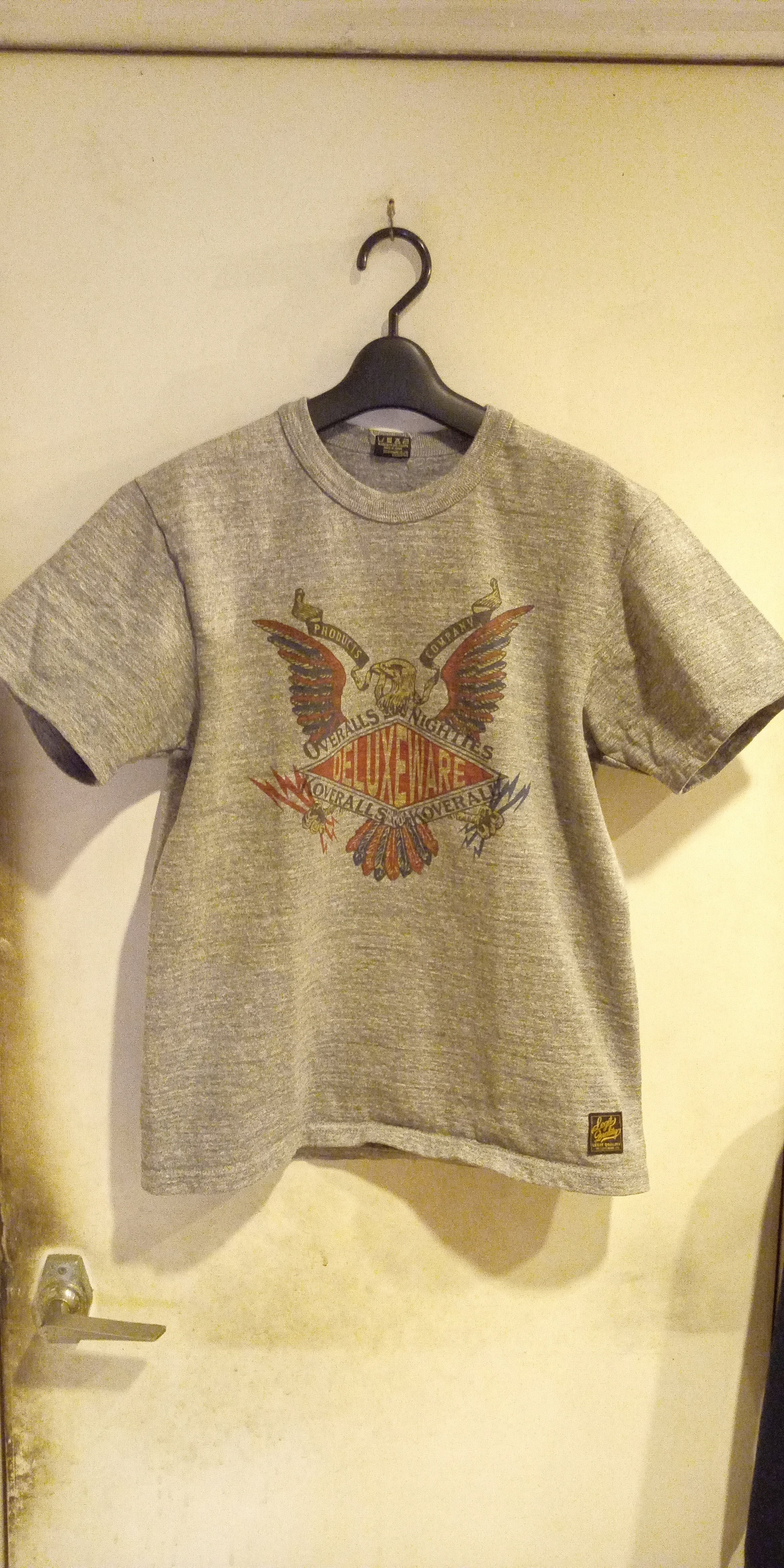 デラックスウエアイーグルプリントTシャツ12.5ozが入荷致しました。カラー杢ダークグレーコットン100%ワンウォッシュ済み