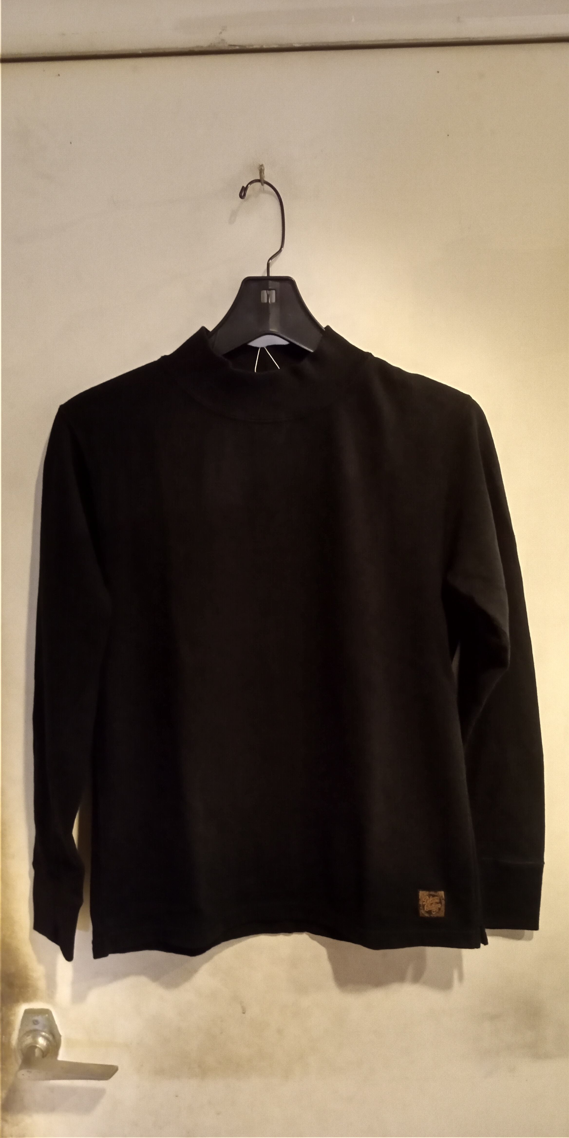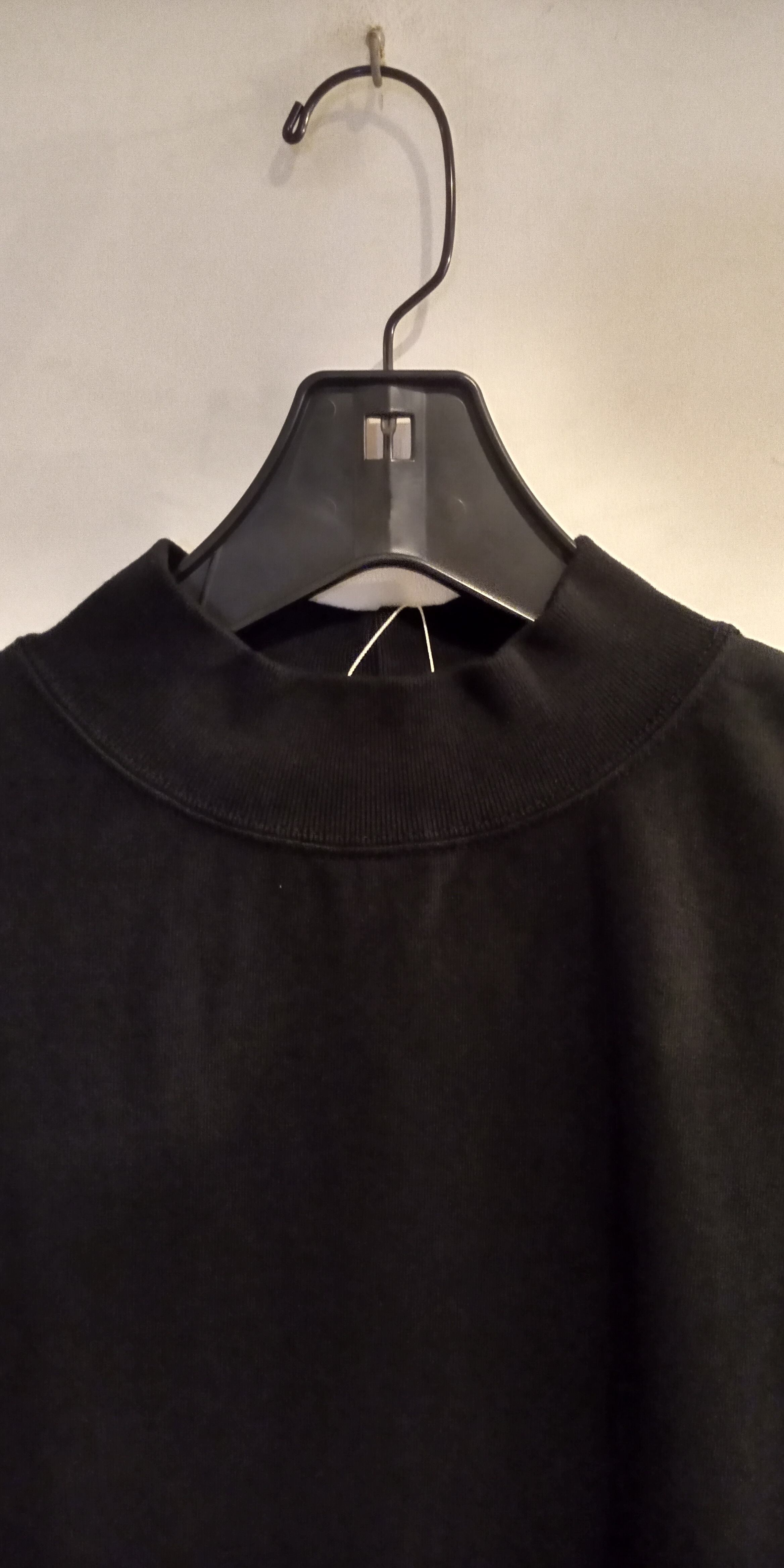 デラックスウエアM300-00旧式吊編機による最薄吊裏毛、ジャケットやシャツのインナーとして開発されたモックネックになります。カラーブラック、コットン100%ワンウォッシュ済み